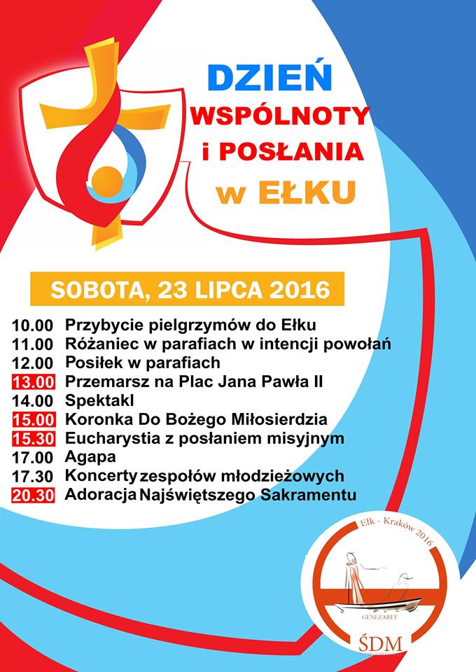 SOBOTA - 23 lipca 2016 - DZIEŃ WSPÓLNOTY I POSŁANIA
